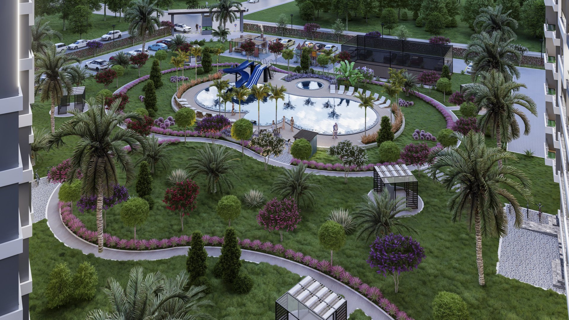 На территории жилого комплекса Lavinya Astoria прекрасно основана внутренняя инфраструктура. У обитателей комплекса есть возможность заниматься спортом, устраивать пикники с друзьями или расслабляться в аквапарке, не покидая при этом территории жилого комплекса.